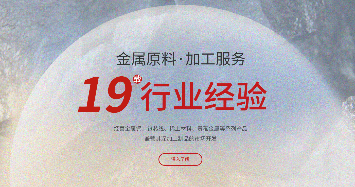 • 產(chǎn)品品類多樣 ,規(guī)格多樣,可根據(jù)客戶需求定制主要生產(chǎn)并經(jīng)營(yíng)金屬鈣、包芯線、稀土材料 、貴金屬等